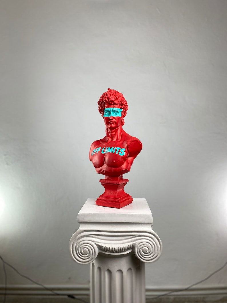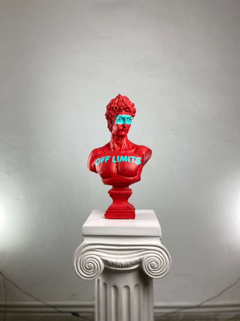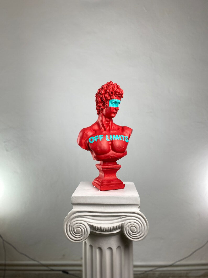The Apollo “Off Limits”™️ sculpture redefines the boundaries between Greek mythology and contemporary culture. Inspired by the timeless beauty of Renaissance artistry, this limited-edition piece captures the divine form of Apollo with a striking urban twist — featuring bold neon accents and hand-painted lettering that challenge convention.